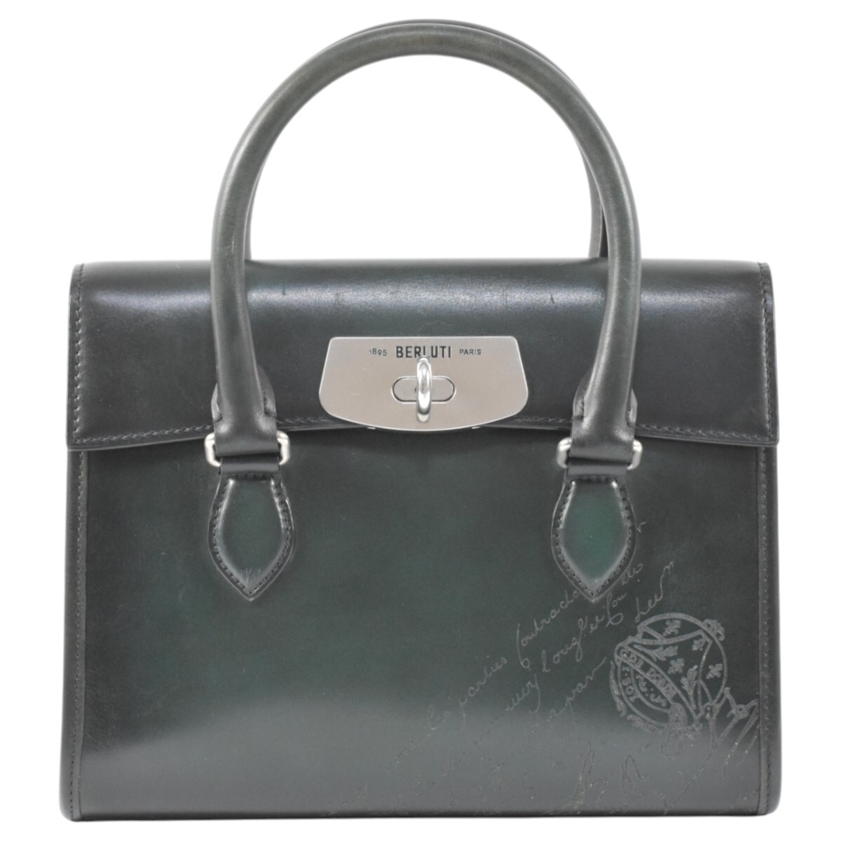 > ベルルッティ 美品 現行モデル パティーヌ スクリット カリグラフィ エミーオガリバー メンズ クラッチバッグ セカンドバッグ 緑 BERLUTI