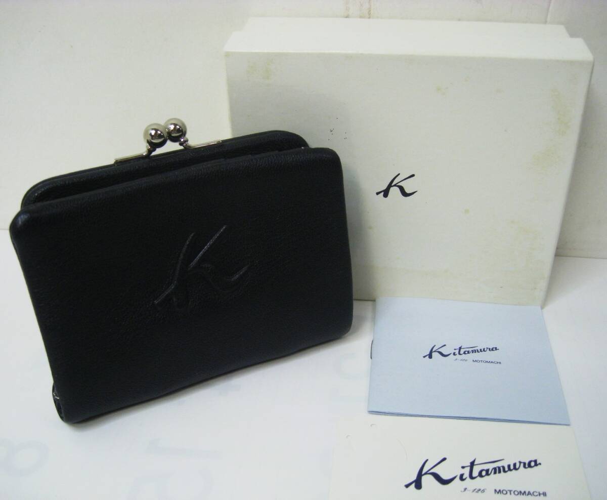 - 【東京 谷中 質屋おぢさん】未使用・新品 キタムラ 二つ折りコンパクト ガマグチ小銭入付 ZH0403羊革黒
