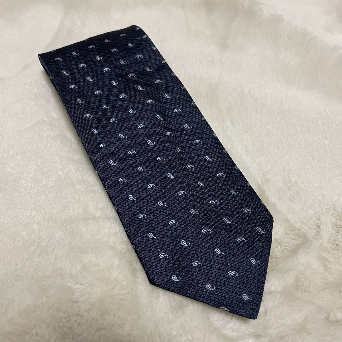 - 美品 ARMANI COLLEZIONI アルマーニ コレッツォーニ シルク100 ネクタイ 総柄 ネイビー系 ビジネス レギュラータイ