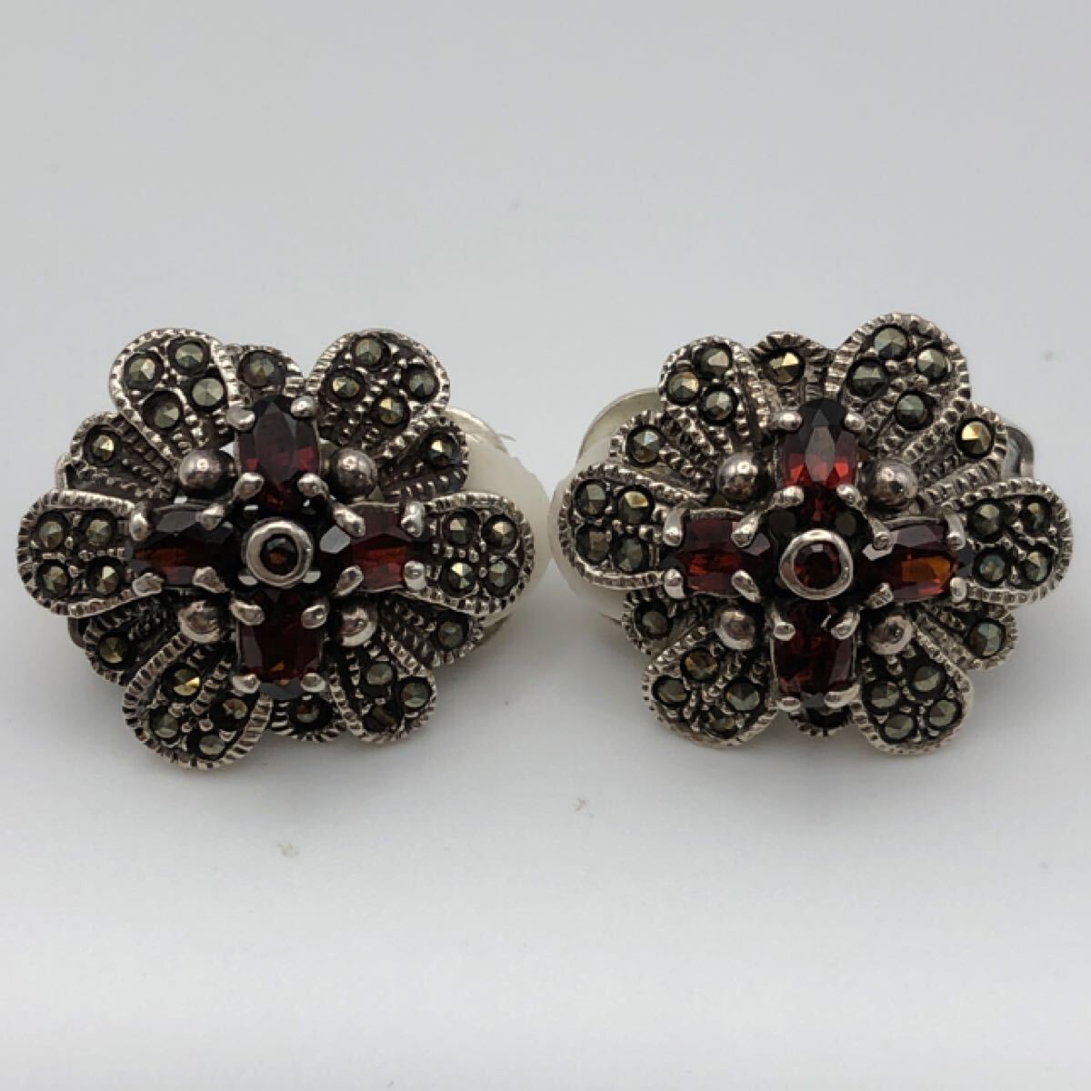 - アンティークイヤリング 6-127【中古品】SV925 色石 フラワー