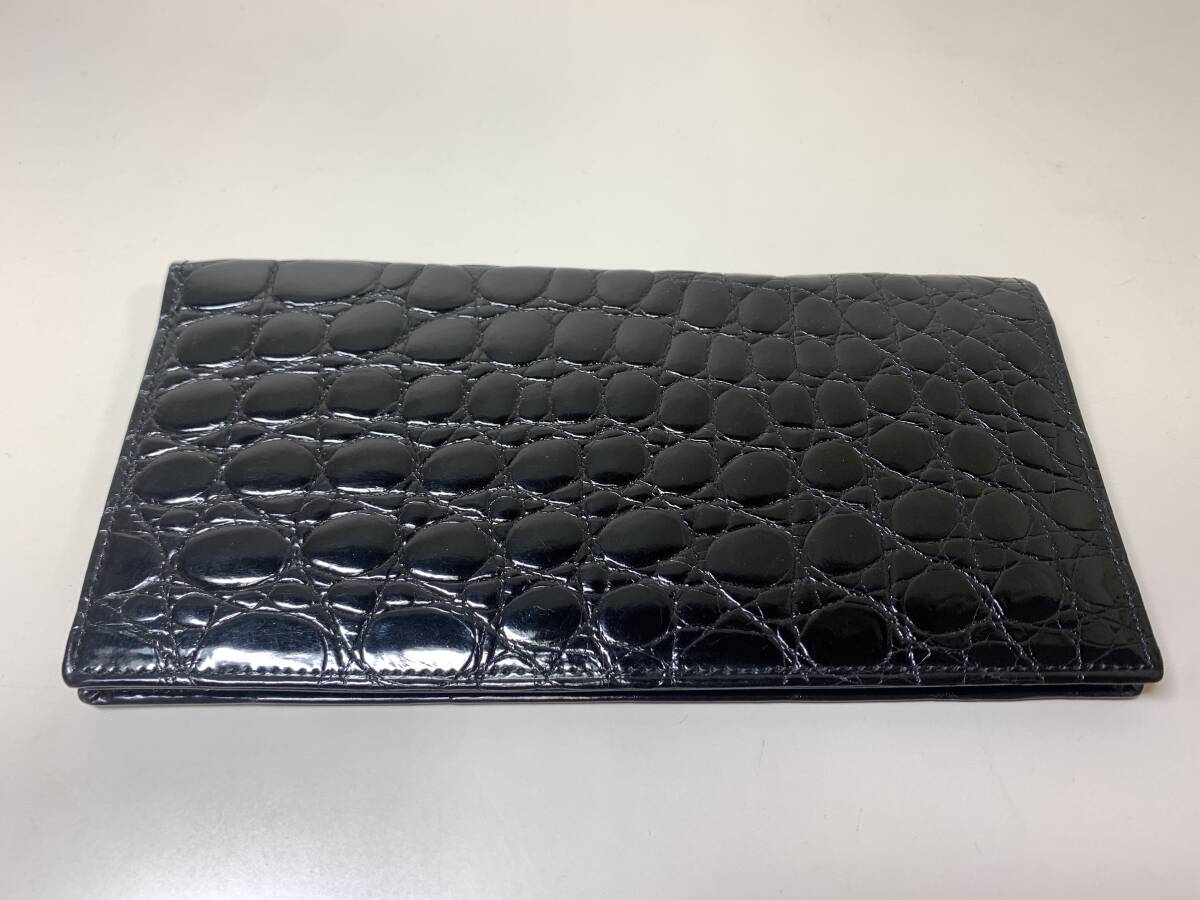 - 【質屋 尾張屋商店 東京】☆極美品☆ クロコダイル 本物 長札入れ 黒