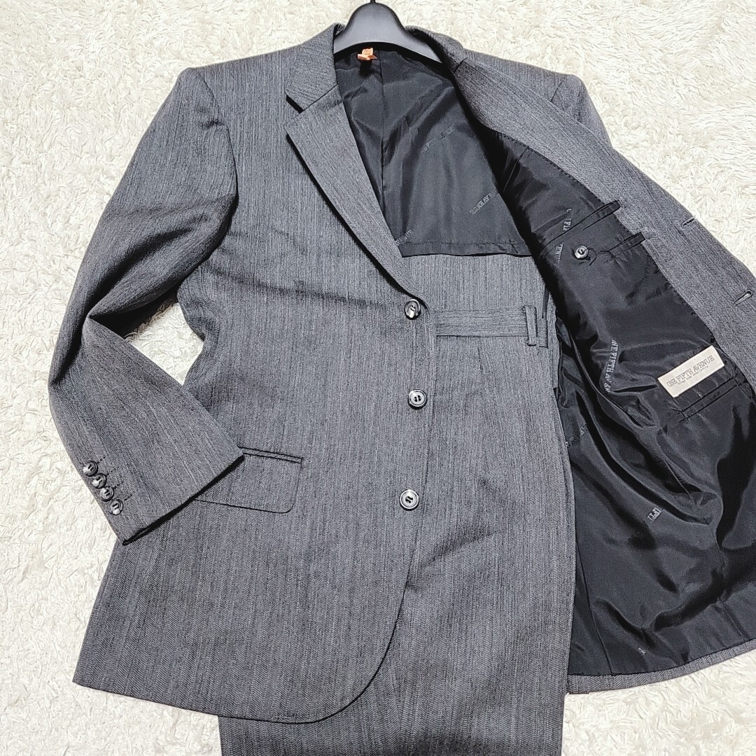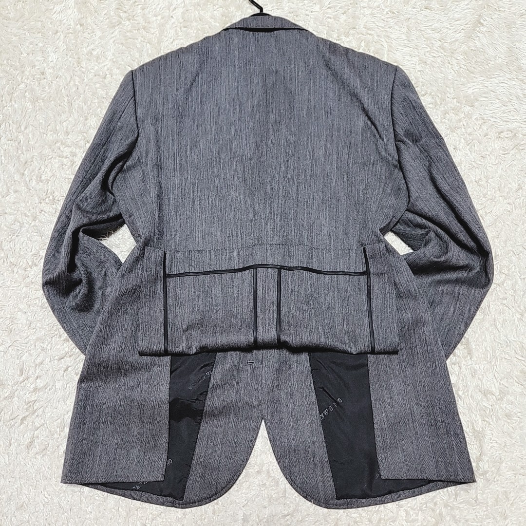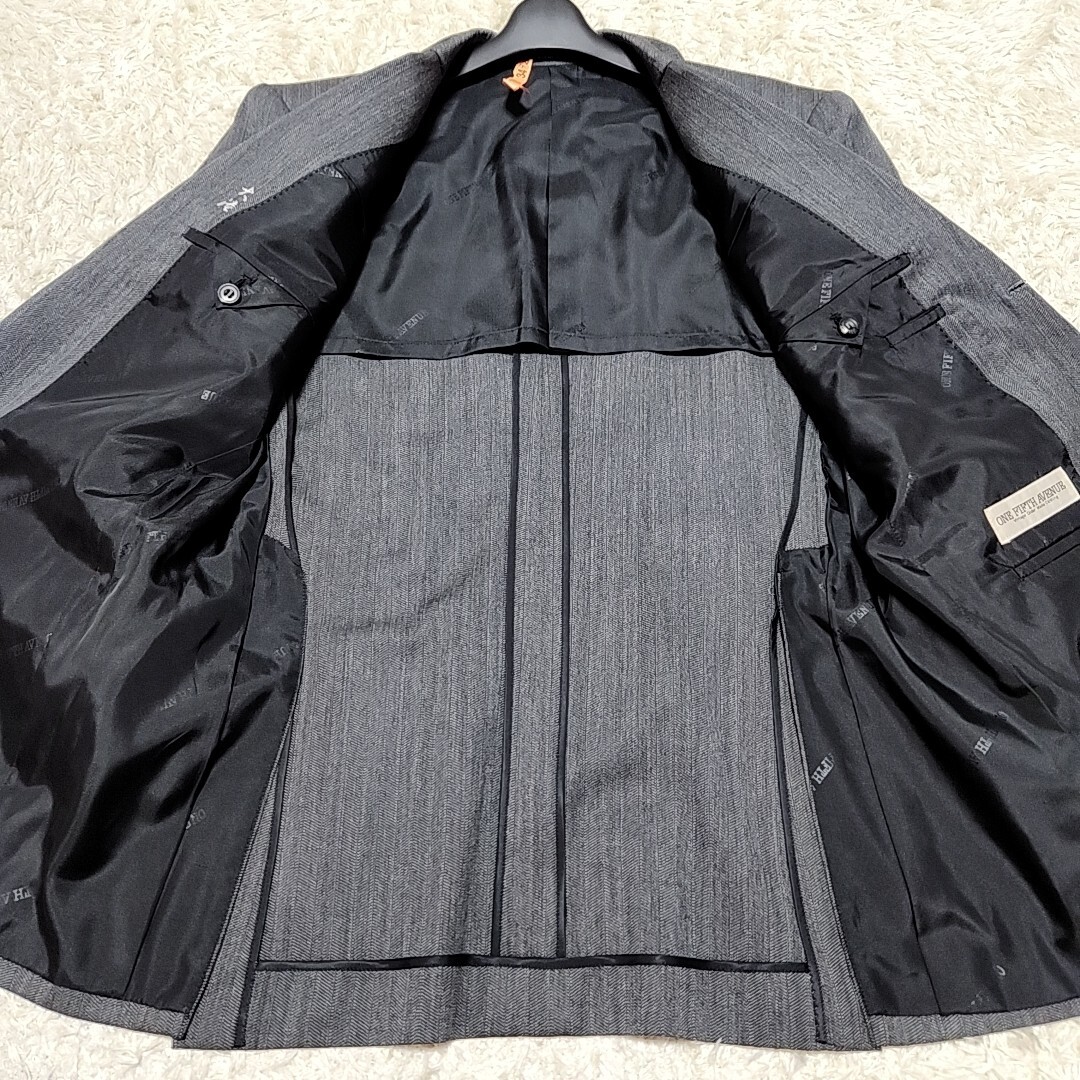 - 美品★大きいサイズ★天満屋 メンズ オーダーメイド スーツ セットアップ シングル サイドベンツ XL相当 グレー ヘリンボーン ウール100%