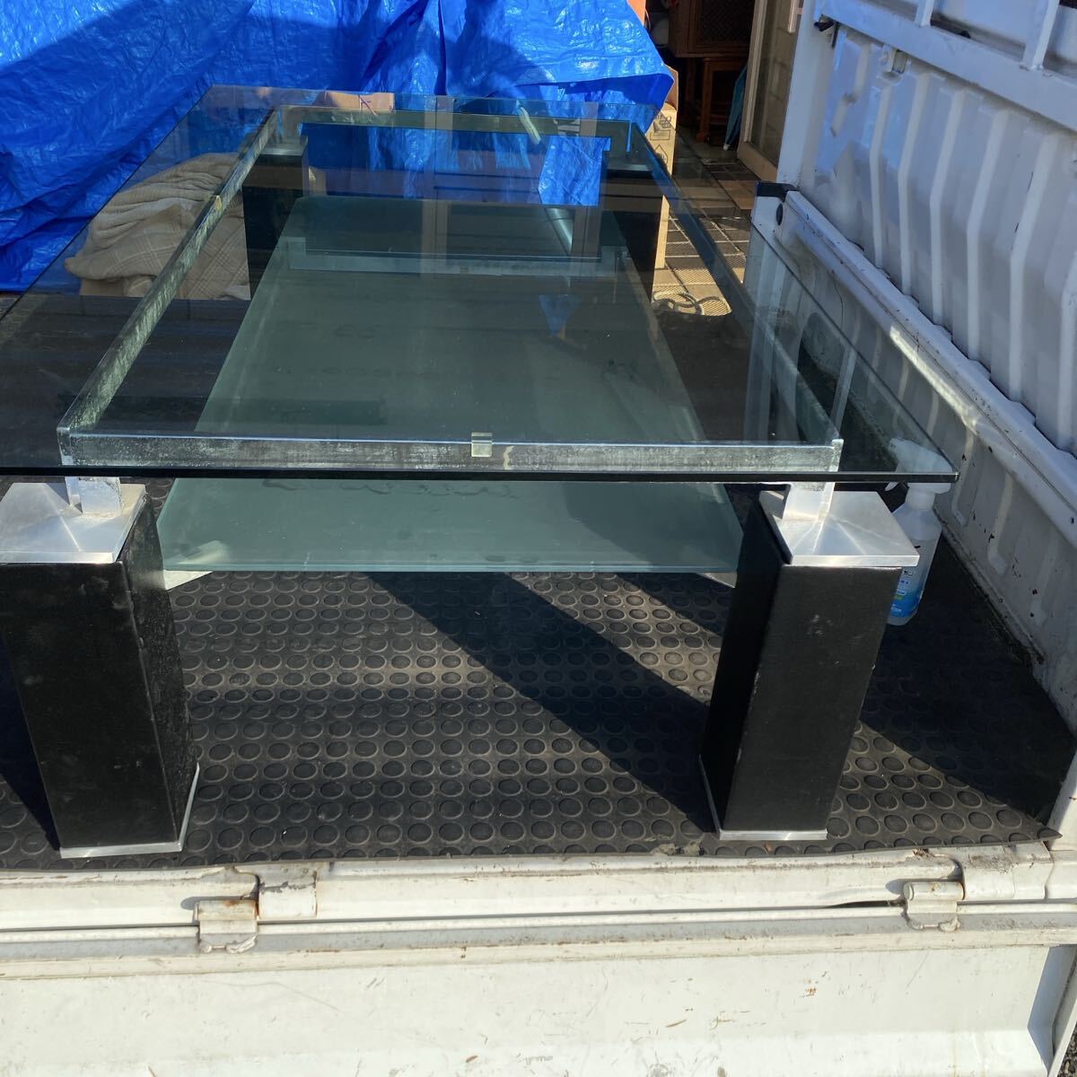 - ガラステーブル_ローテーブル黒 引き取りか自社配達のみ