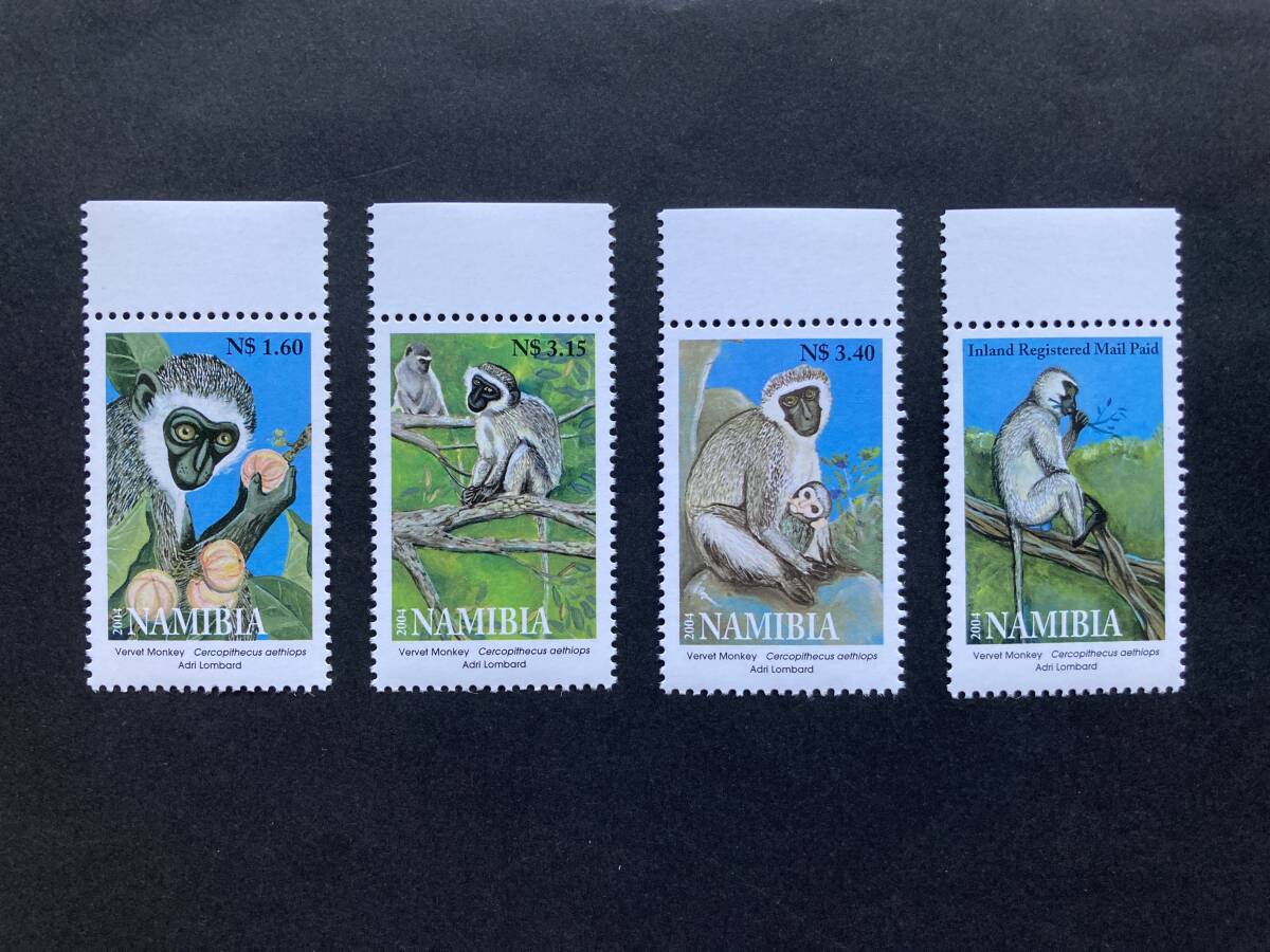 - 外国切手: ナミビア切手「申(サル)年」(サバンナモンキー)4種完 未使用