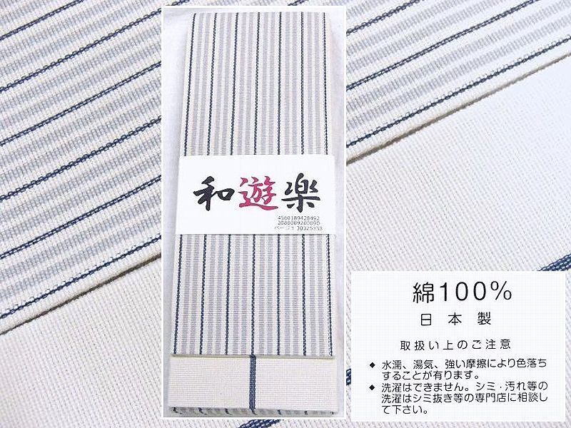 日本製 綿100% 織りの角帯 ストライプ柄 生成り色 新品
