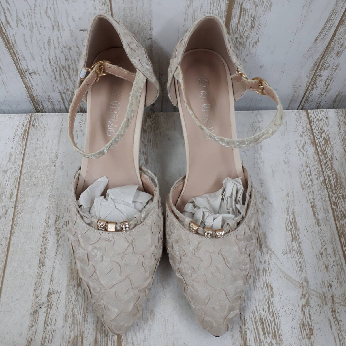 - 靴947-194♪【80】未使用品 HJ.QIANLANG パンプス 40サイズ 約25㎝~25.5㎝ 杏色-CN40