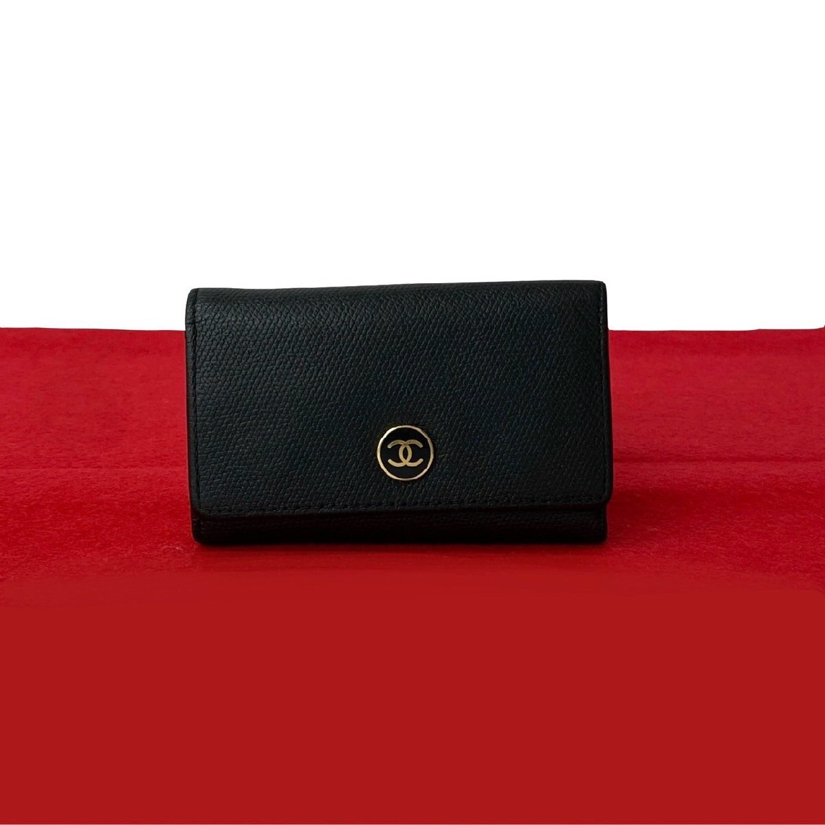 > 極 美品 シール有 8番台 CHANEL シャネル ヴィンテージ ココマーク ロゴ レザー 本革 キーケース キーカバー キーホルダー ブラック 81645