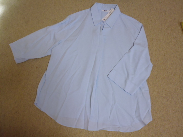 > ●ユニクロ WOMEN スキッパーブラウス(水色) レーヨン XLサイズ● 新品未使用タグ付き