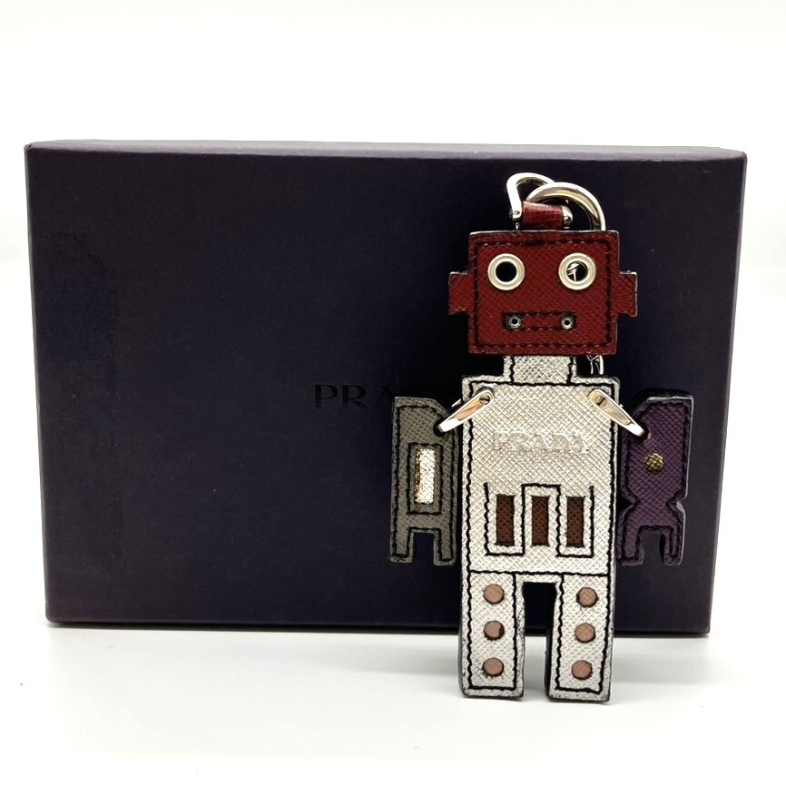 - cプラダ ロボット キーリング キーホルダー バッグチャーム サフィアーノ レザー メタル PRADA ABランク 中古