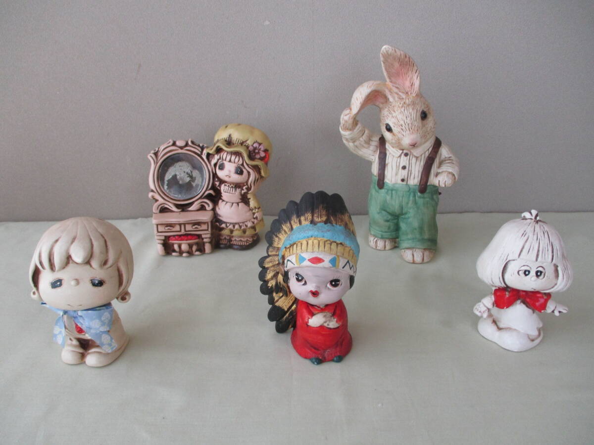 - 昭和レトロな人形(5個セット)内4つは貯金箱、陶器製 : インテリア・置物・民芸品