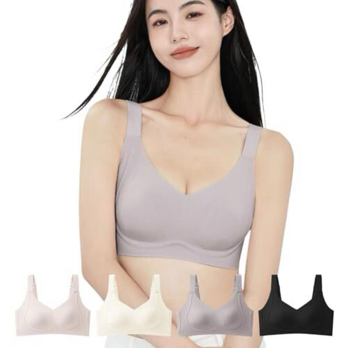 - [veimia] シームレス小さく見せるブラ【0.2cmの極薄パッド?瞬間痩せて見え】快適フィットと清涼感で1日中爽やか 蒸れない グレーパープル