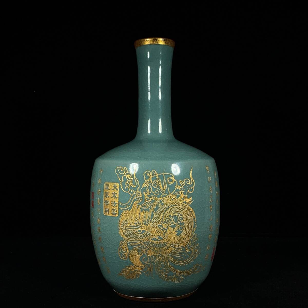 - 蔵友旧蔵出 宋 汝窯 包口 銘文 龍鳳紋 紙槌瓶 稀少珍品 貴重品 古陶瓷品 置物 古賞物 中国古玩 中国古美術品