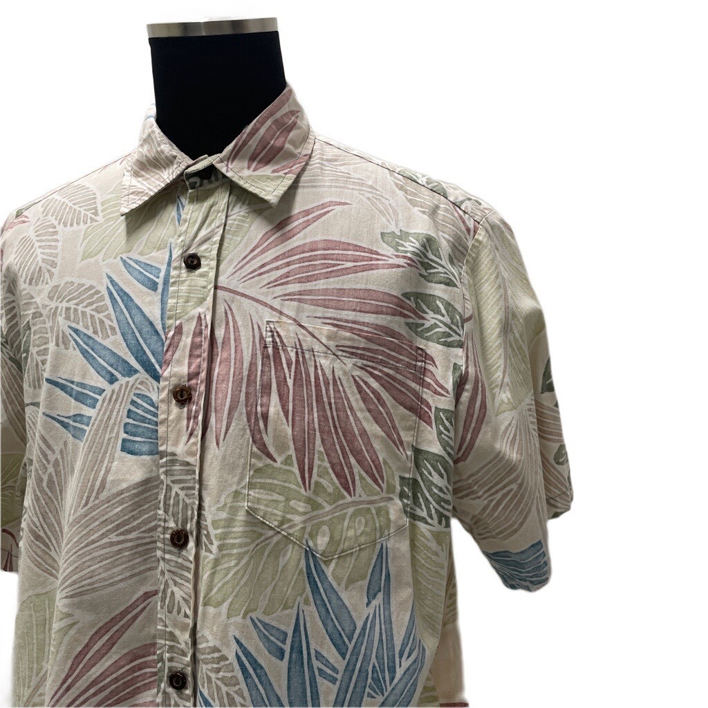 - ハワイ製 90’s MD FASHION アロハ シャツ / べージュ リバースプリント ココナッツボタン ハワイアン コットン 総柄 古着