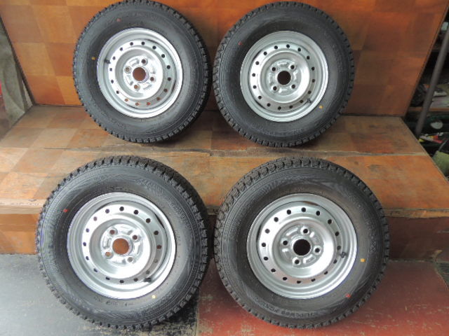 > T447 145R12 LT 6PR ダンロップ WINTER MAXX スタッドレス 4本 2022年製 イボ残り バリ溝 スチールホイール付き 自家塗装
