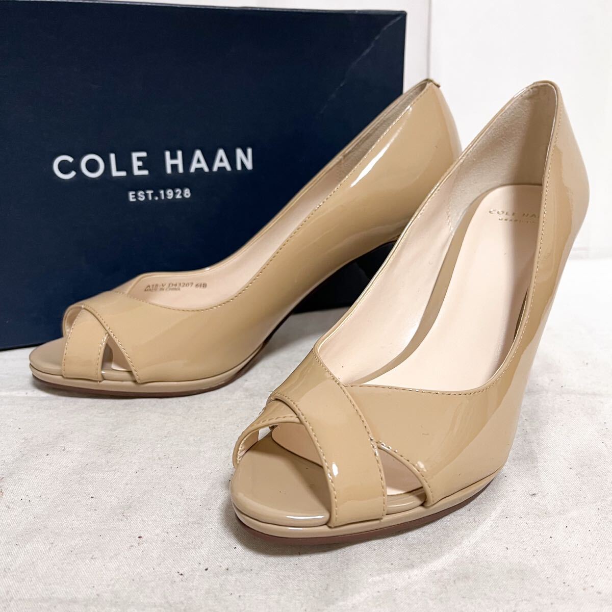 - 和814★ 美品 箱付き COLE HAAN コールハーン パンプス ヒール エナメル パテントレザー オープントゥ 6.5 B ベージュ レディース