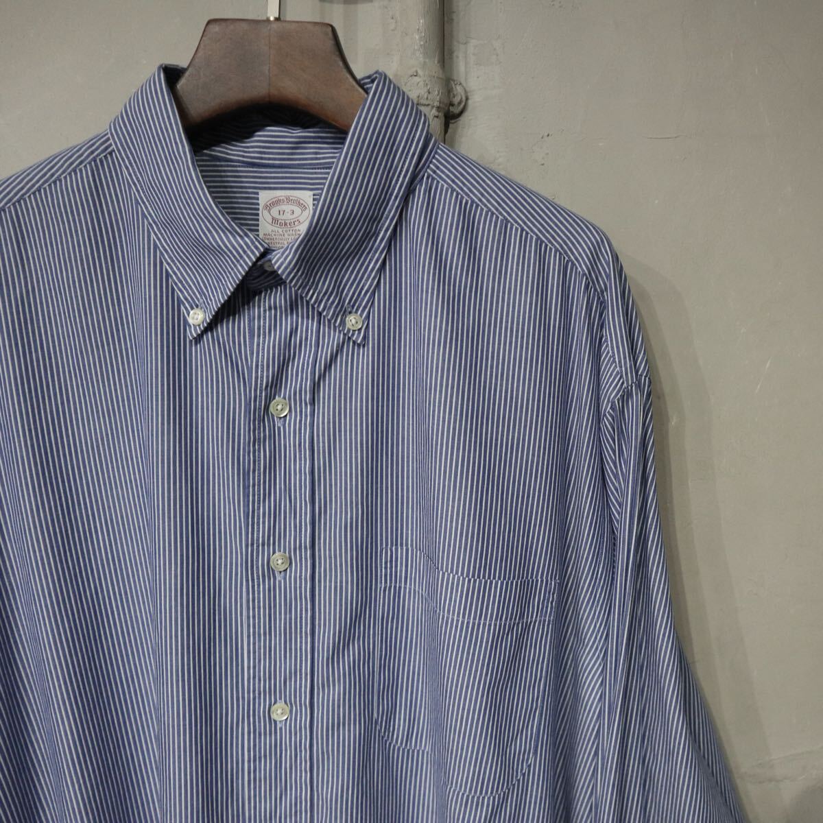 > 【即決】brooks brothers makers ブルックスブラザーズ メイカーズ B.D ボタンダウンシャツ ストライプ ブルー 青 USA アメリカ製古着 17-3