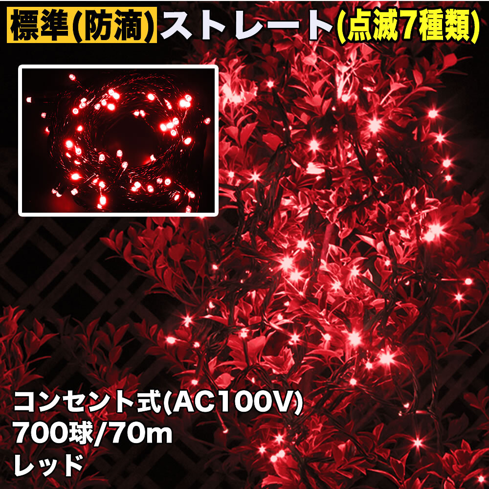 - クリスマス 防滴 イルミネーション ストレート ライト 電飾 LED 700球 70m レッド 赤 7種類点滅 Aコントローラセット
