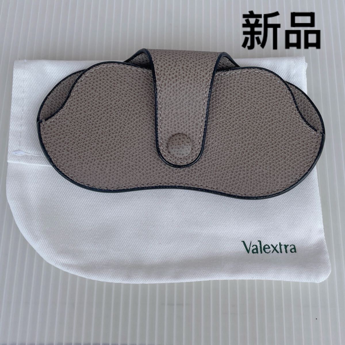 - VALEXTRA ヴァレクストラ メガネケース オイスターグレー グレージュ アイウェア 眼鏡 小物入れ ポーチ レザー 新品