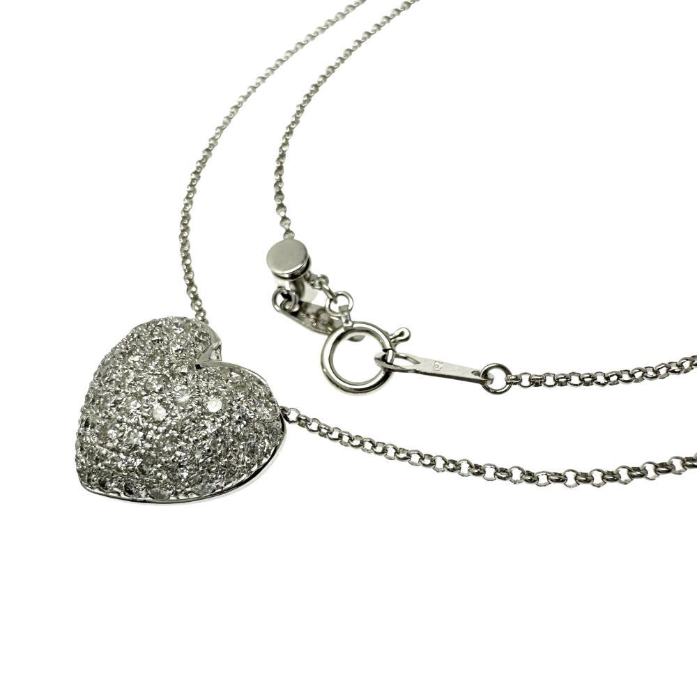 > ハート パヴェ ダイヤモンド 計1.00ct ネックレス K18WGホワイトゴールド 6.1g 45cm レディース