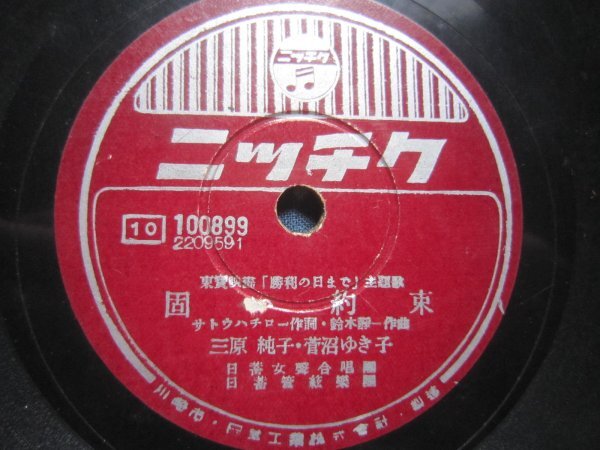 - コロムビア流行歌SP盤686★三原純子、菅沼ゆき子/固い約束★轟夕起子/祖国の花★古賀政男・作曲映画主題歌ニッチクSPレコード