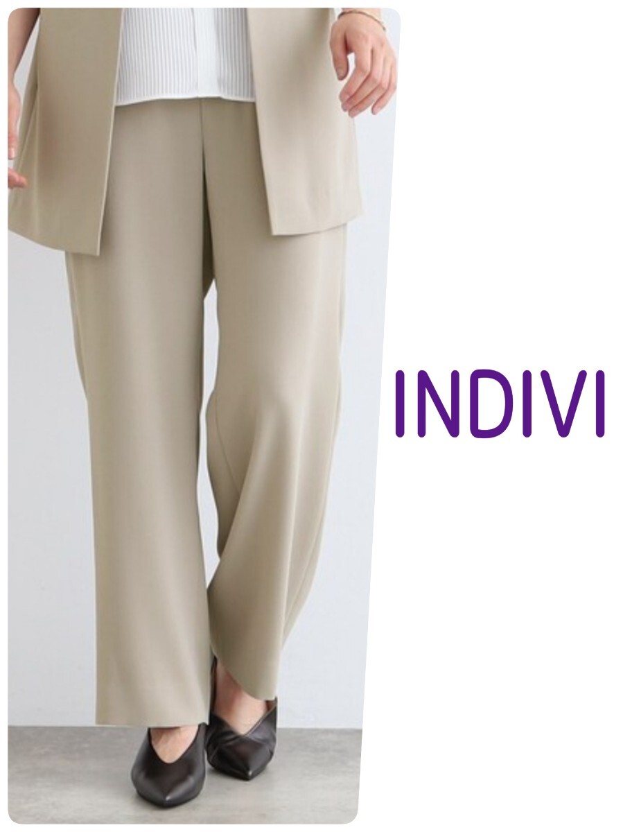 - 送料無料★INDIVI インディヴィ ストレートパンツ 38 ベージュ イージーケアパンツ ウエストゴム 洗える