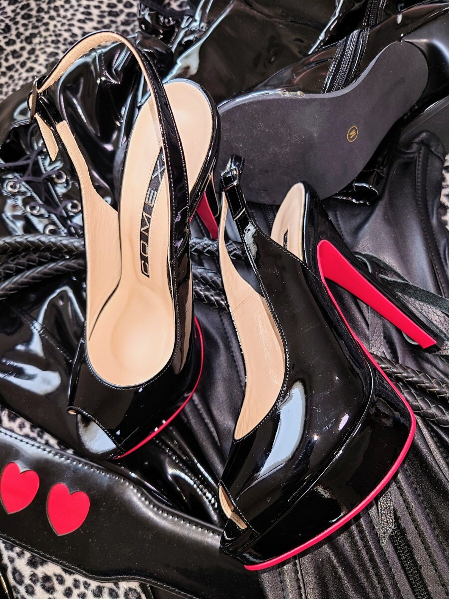 > ☆COMEX☆超美脚・オープントゥ・エナメルパンプス・超ピンヒール・女王様・ミストレス・SM・光沢・艶あり・セクシー・夏・極美品・愛用品