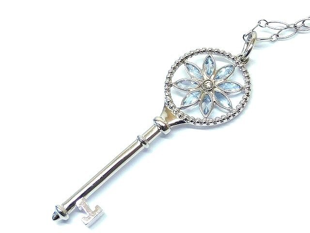 > 美品 ティファニー ダイヤ アクアマリン デイジーキー ネックレス ☆ K18 WG ホワイトゴールド レディース TIFFANY&Co.□6F6I7HS