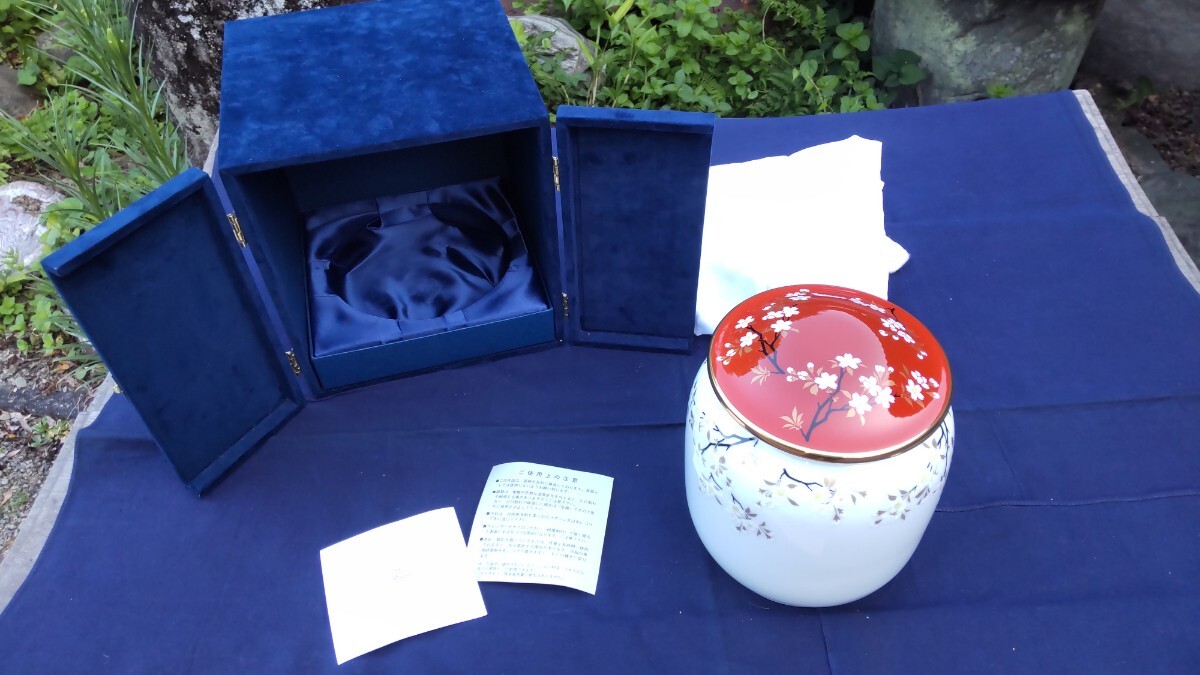 - 深川製磁 骨壺 桜紋家型5号 箱付き 未使用保管品