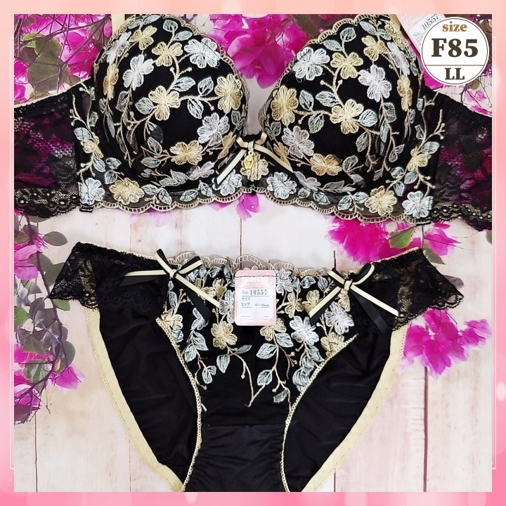 > Zf8516◎美胸ブラショーツセット【F85/LL】下着 ランジェリー 脇高 美谷間 小花刺繍 黒 新品未使用