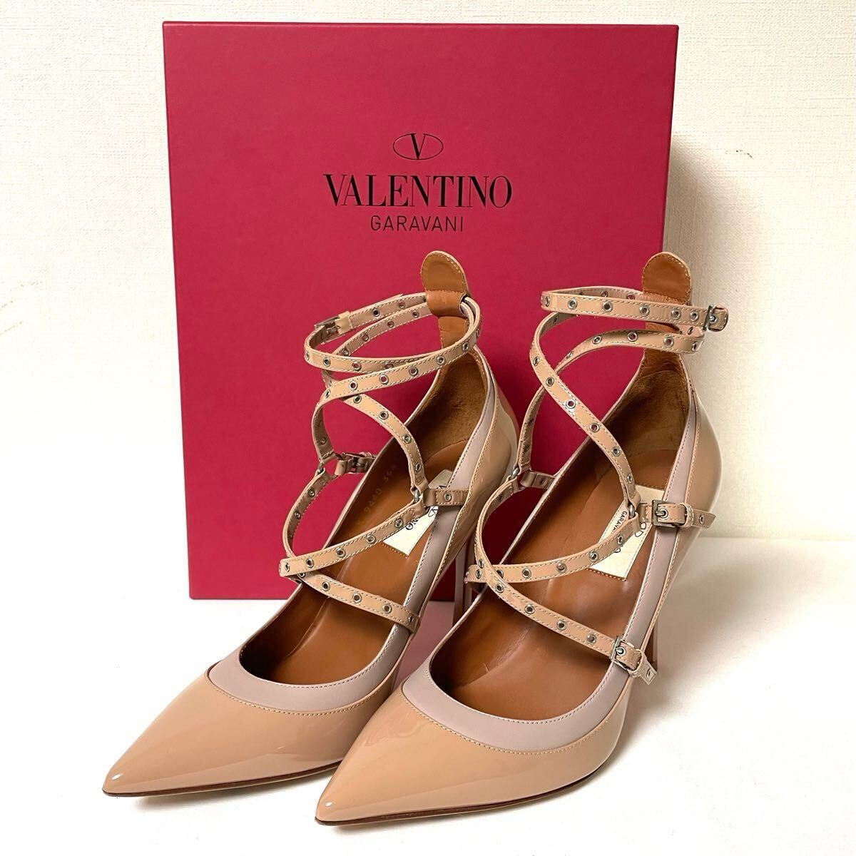 - 美品 外箱付き ヴァレンティノガラヴァーニ パンプス スタッズ ピンクページュ