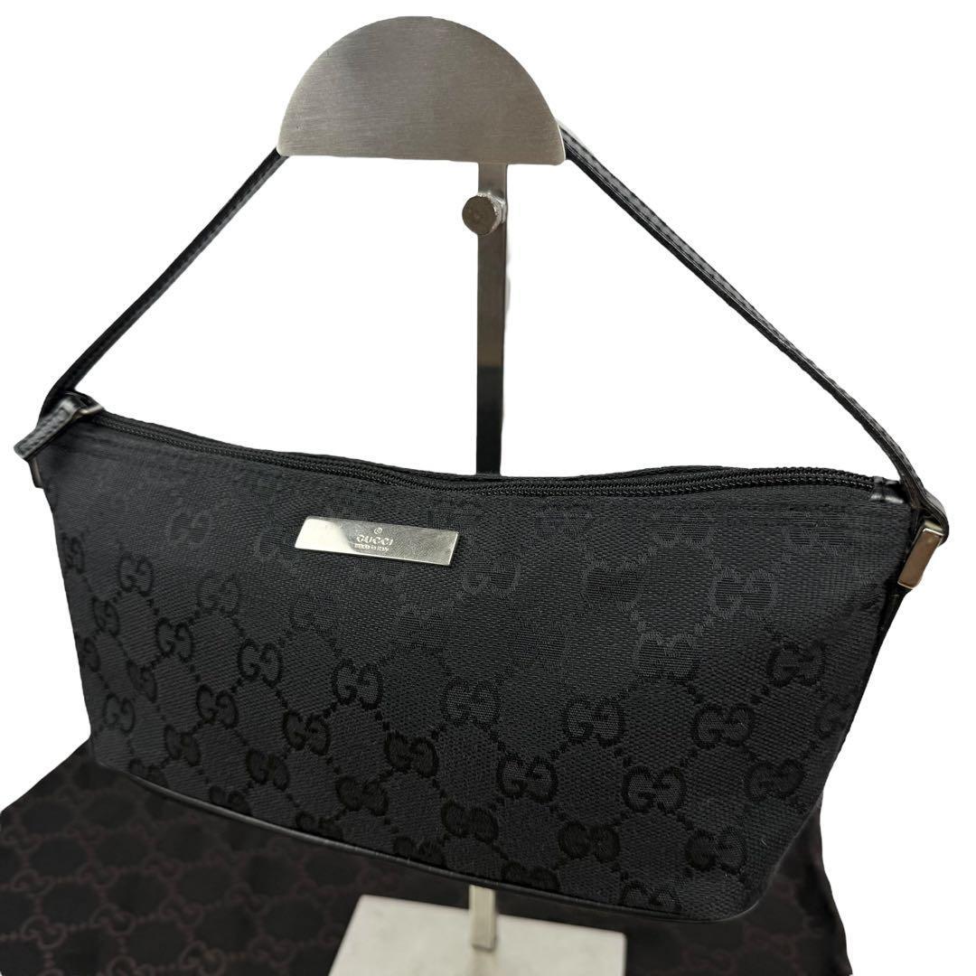 - 【美品】GUCCI グッチ GG柄 キャンバス アクセサリーポーチ ワンショルダーバッグ ミニカバン ロゴプレート レザー ブラック 黒 039 1103