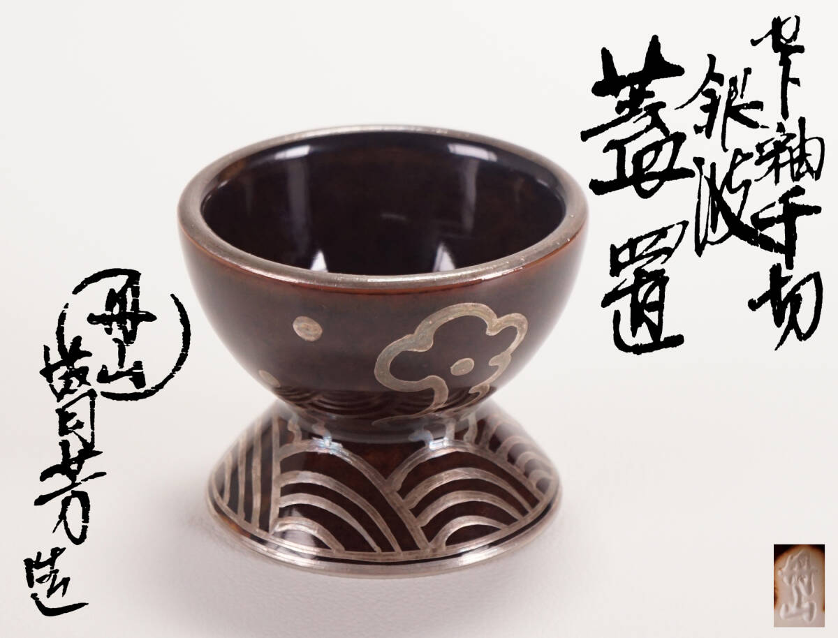 > 【asiya283】丹山窯『小峠葛芳』銀波 千切 蓋置 共布 共箱◆名工 煎茶道具 茶道具 宮川香斎/島岡達三に師事 蔵出し 古美術 即決 送料無料