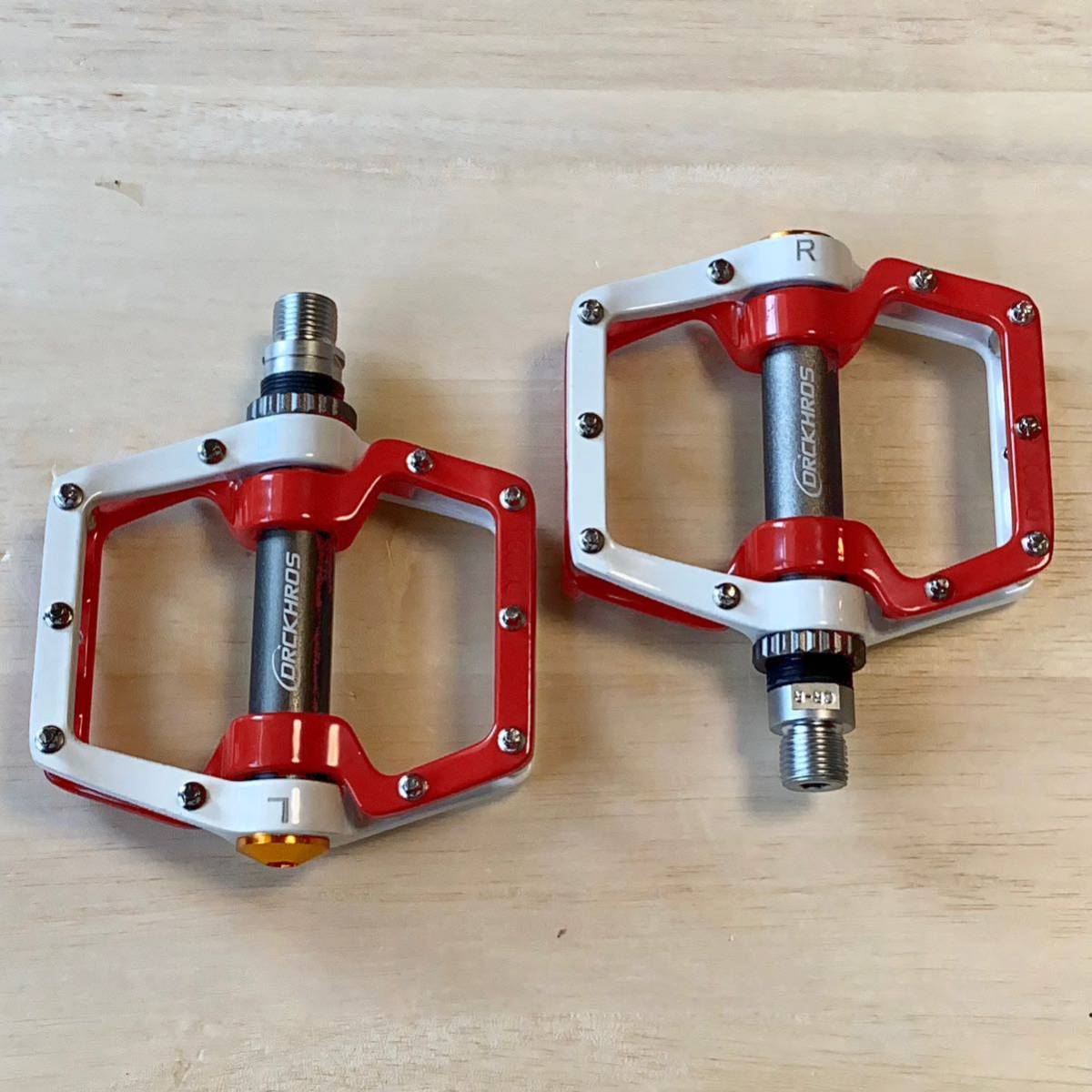- 【新品】DRCKHROSフラットペダル レッド/ホワイト 自転車ペダル【送料無料 匿名配送】