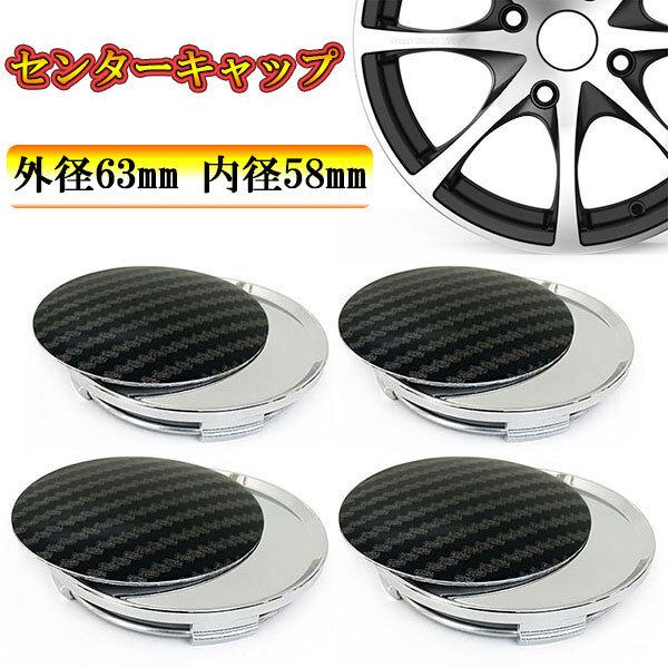 > 車 ホイール センターキャップ ハブキャップ ホイールキャップ 外径 63mm 内径 58mm DIY 汎用 F シルバー×カーボン 送料無料