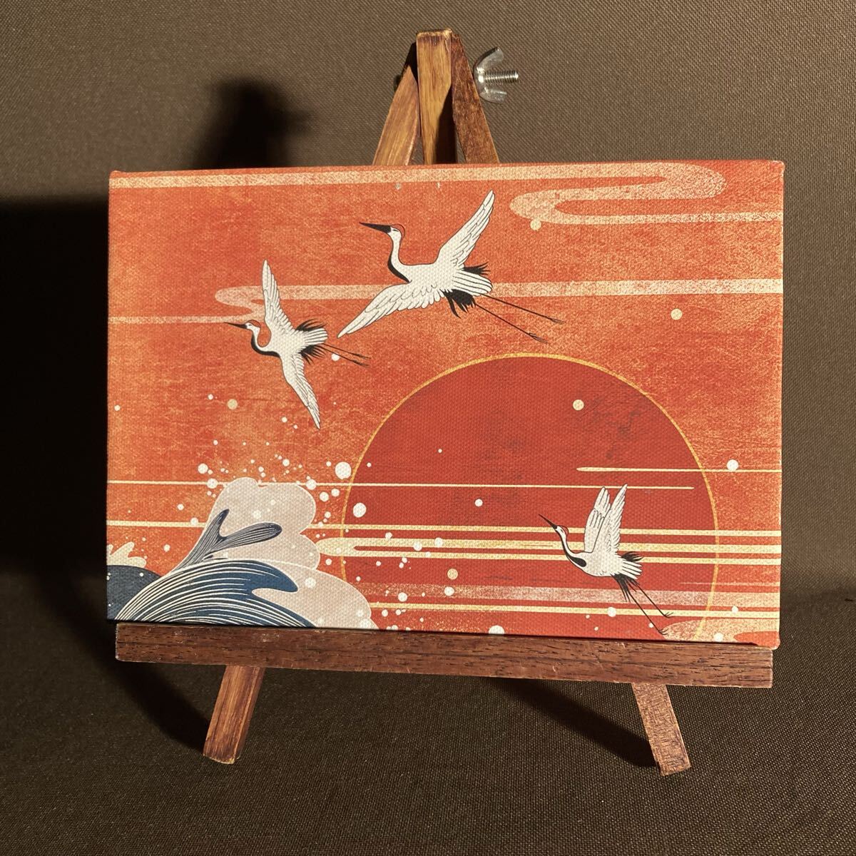 - ★アウトレット★プリントアート 日の出と鶴 インテリア 置物 絵画