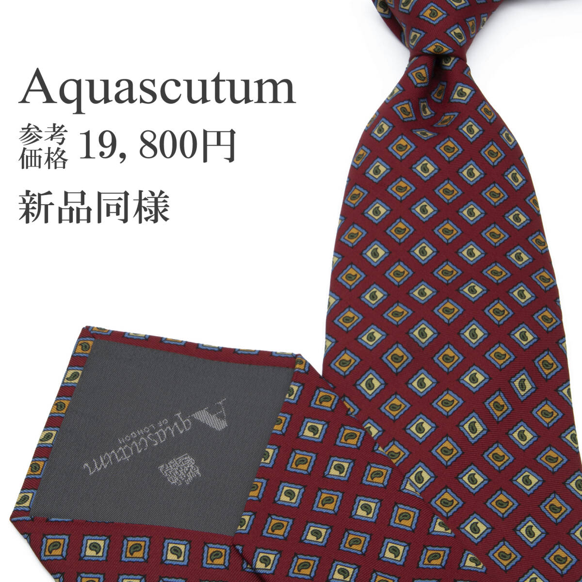 > 送料無料 アクアスキュータム ネクタイ 新品同様 シルク 赤 ワインレッド 青 緑 オレンジ 黄色 四角 スクエア ブランド 珍しい 綺麗 P197