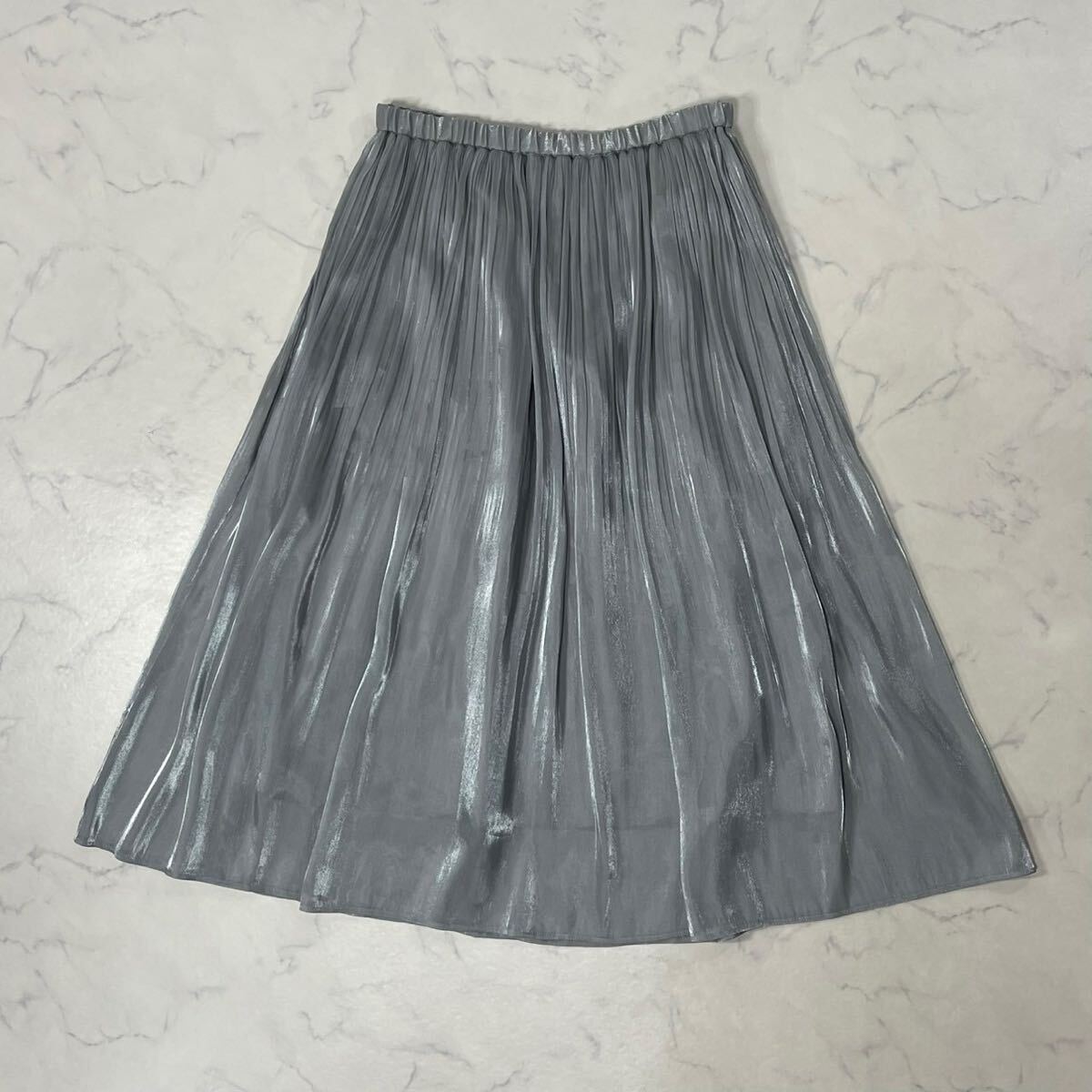 > INDIVI インディヴィ 大きいサイズ ワントーン 裏地付き ウエストゴム 透け感 プリーツ フレア ロング スカート グレー 15