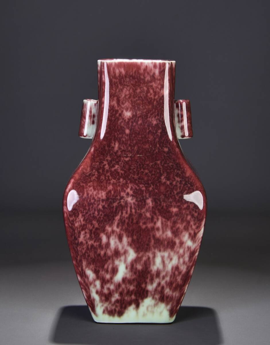 - 多宝閣 ■ 207071 人間国宝 中国磁器【乾隆窯変釉角型花瓶(耳巻)】工芸品 施釉陶 陶芸 置物 收藏品 孤品
