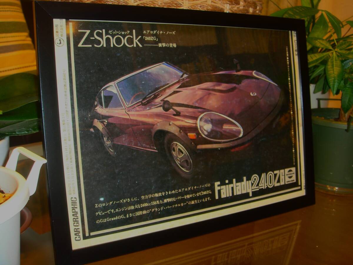 - 昭和 当時物 HS30 NISSAN FAIRLADY 240ZG 日産 フェアレディ★検: 旧車中古 広告 A4 額付き ガレージ インテリアS30系★No.4517★