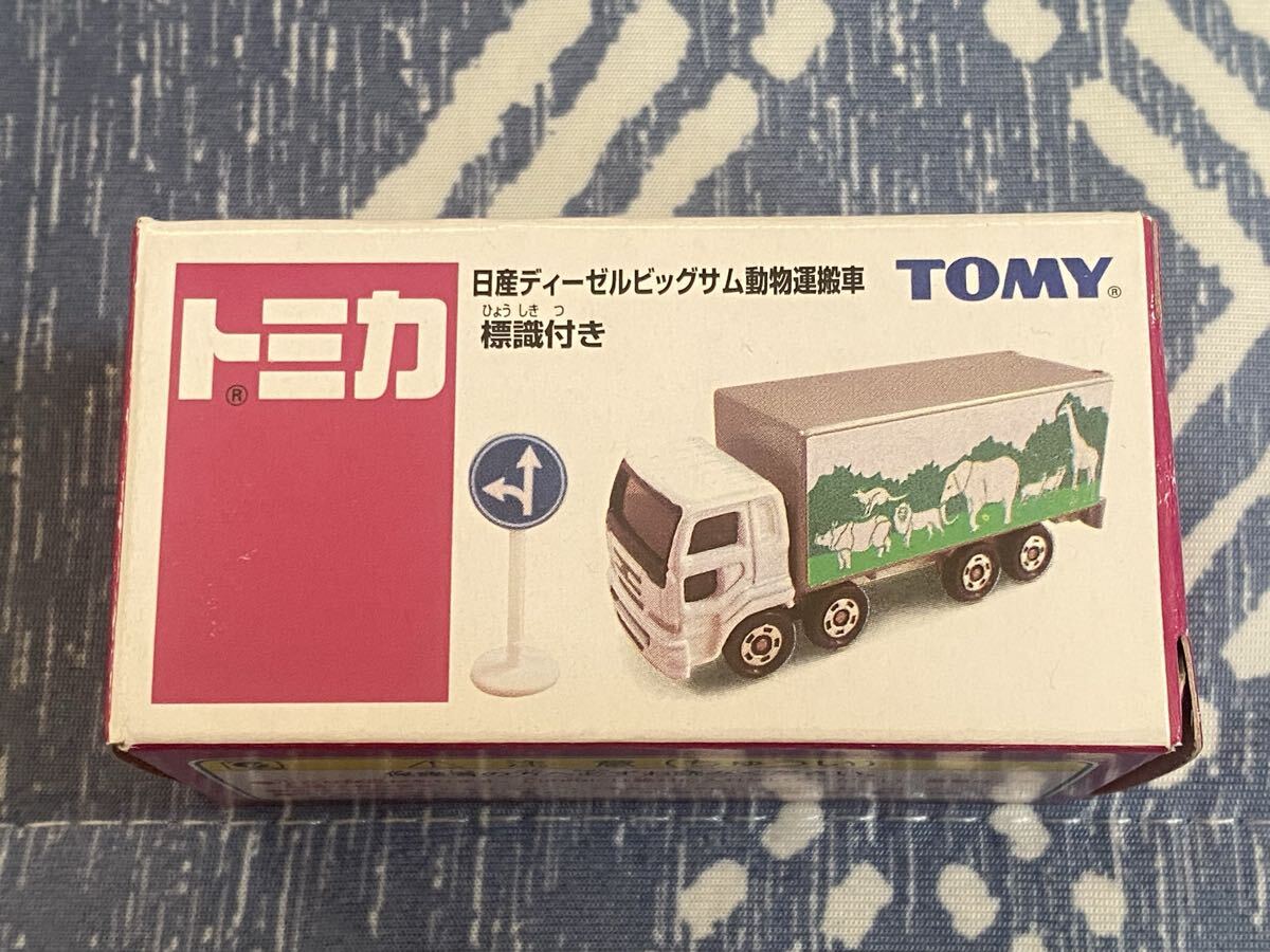 - イオン特注トミカ 日産ディーゼル ビッグサム 動物運搬車 標識付き