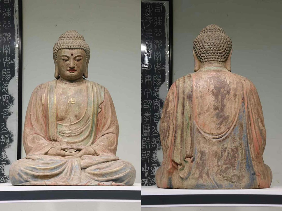> ■観心・時代旧蔵■K8358楠明時代 楠木釈迦牟尼坐仏造像 楠木 細工彫刻★仏教古美術★仏像★細密細工★廃寺旧蔵★廃寺買出品