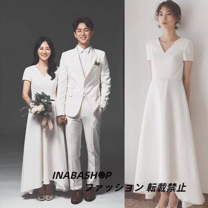 - ウエディング ドレス ウェディングドレス レディースドレス Vネック ミニトレーン付き 袖あり 前撮り 後撮り 披露宴 結婚式 海外挙式ドレス