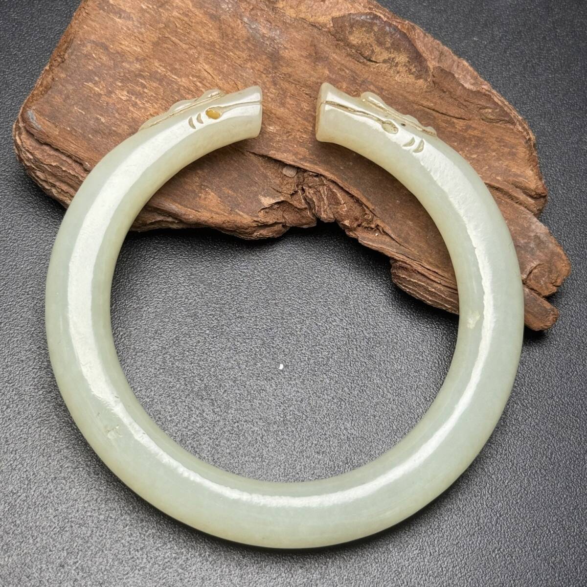 > 唐物 明清時期 玉彫 和田玉 雙龍玉腕輪 雙龍護主 吉祥富貴 守護平安 玉質温潤 包漿醇厚 極細工 中国古玩 骨董品 古美味 D68