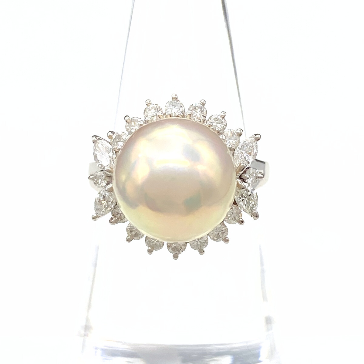 - タサキ TASAKI パール デザインリング プラチナ メレダイヤ 指輪 真珠 リング 13.5号 Pt900 パール ダイヤモンド レディース 【中古】