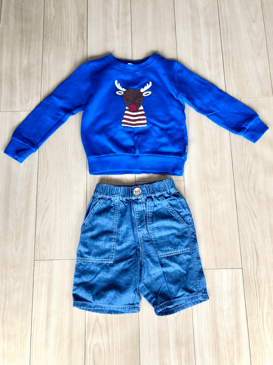 - 【セット価格!】ボーイズ用「スウェットの上+ジーンズのショートパンツ」(Noeil aime Bebe, Shoo-La-Rue / 110cm / 120cm)