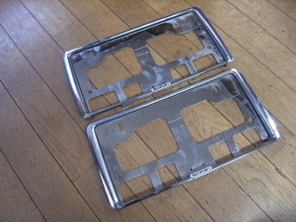 - 送料無料! 【SUZUKI】スズキ純正 メッキ ナンバーフレーム 前後2枚セット 破損個所なし