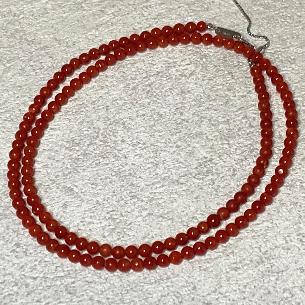 > ☆天然サンゴ K18WG留め具 ロングネックレス(サイズ約3.8mm前後 長さ約52-56.5cm)