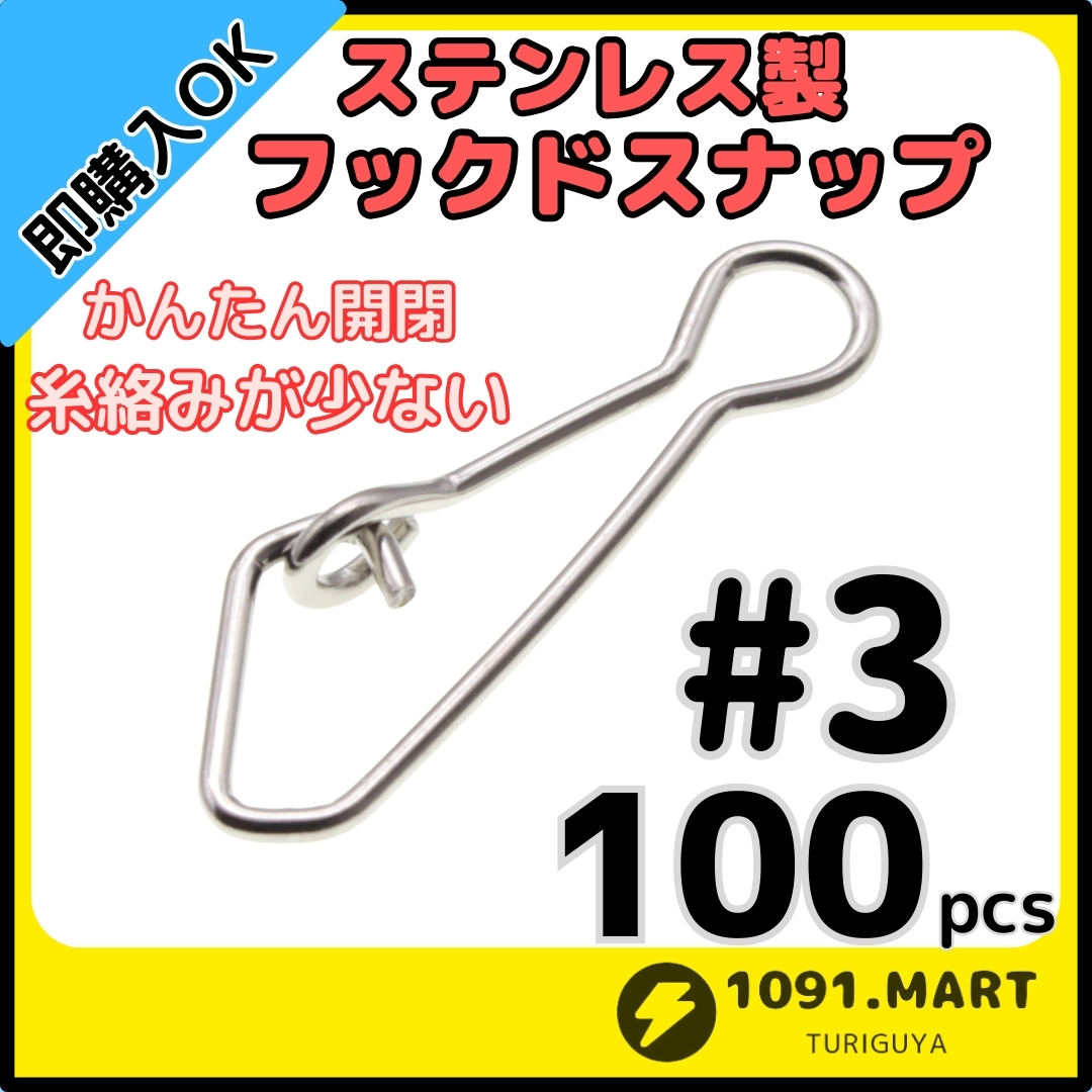 > 【送料150円】ステンレス製 フックドスナップ #3 100個セット インタースナップ ルアー釣り エギング かんたん開閉 すり抜け抜群!