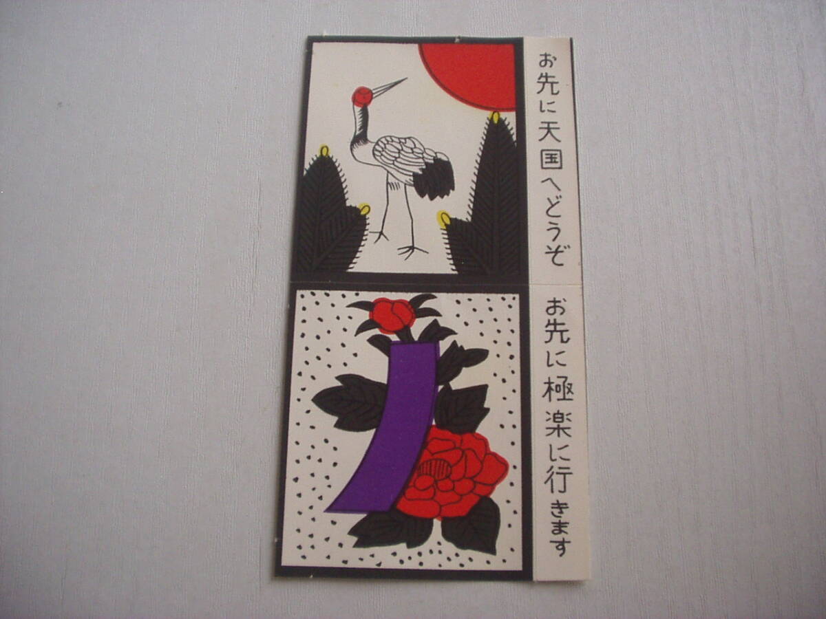 - 印刷物 シール お先に天国へどうぞ お先に極楽に行きます 花札 松に鶴 牡丹青短 昭和 ステッカー
