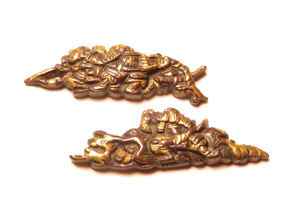 - 【11229】刀装具 江戸~明治 赤銅地 武者 目貫(初品・買取品)